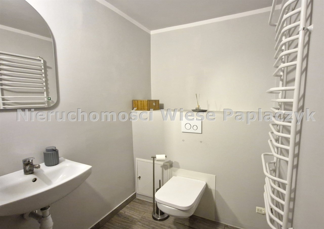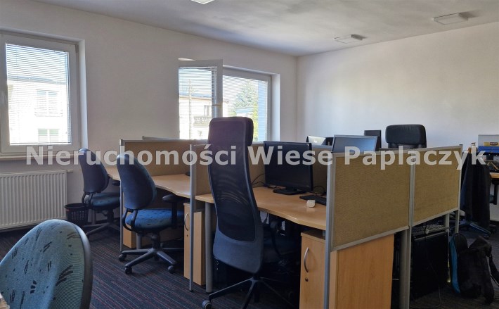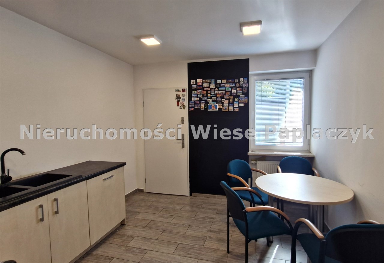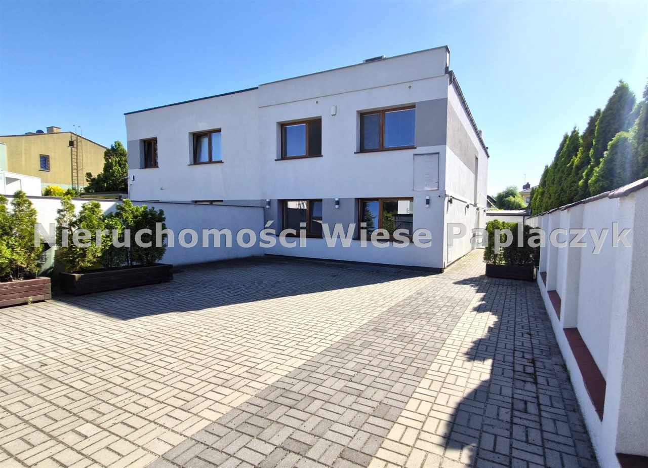 Na sprzedaż prawy segment budynku mieszkalnego jednorodzinnego w zabudowie bliźniaczej, dwukondygnacyjny (parter i piętro), częściowo podpiwniczony. Budynek aktualnie użytkowany na cele biurowe. Na parterze (72,6 m2), znajduje się pokój wraz z holem o powierzchni 47 m2, pokój - 8 m2, kuchnia - 12 m2, garderoba - 3,8 m2 oraz wiatrołap.